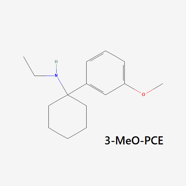 3-MeO-PCE Hydrochloride is an analog of MXE (methoxetamine) — one of the more popular dissociative drugs in the arylcyclohexylamine family. Its effects are stimulating in lower doses and dissociative and hallucinogenic in higher doses.